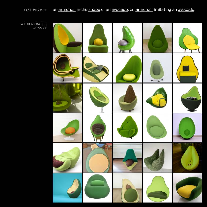 Now imagine the best features of those two. Yes, that happens to be Dall-E by Open AI. Although the name sounds kind of cheesy, Dall-E lives up to its name and deserves to be called artificial Salvador Dali because it can turn text into image with an impressive amount of creativity. Basically, Dall-E is a GPT-3 AI for images and creates incredible images following your text requests. Simply ask Dall-E to design a green clock with flower ornaments shaped like a turnip and you’ll have 25 alternatives instantly. Make it an elephant shaped white sofa frosted with surgical masks, you have it. It is impossible to not be impressed by the authenticity and variety of the result Dall-E gives you.